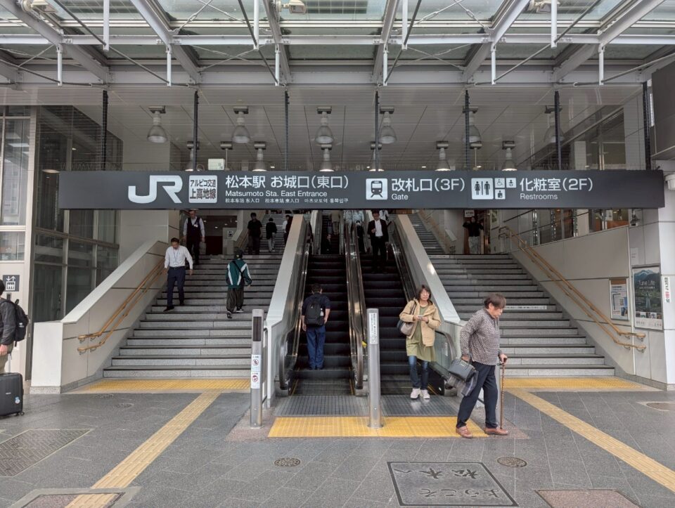 Take the JR Limited Express Shinano from Matsumoto to Nagano Station (approx. 55–60 minutes), then transfer to the Nagano Electric Railway local or limited express train to Obuse Station (approx. 25–35 minutes).