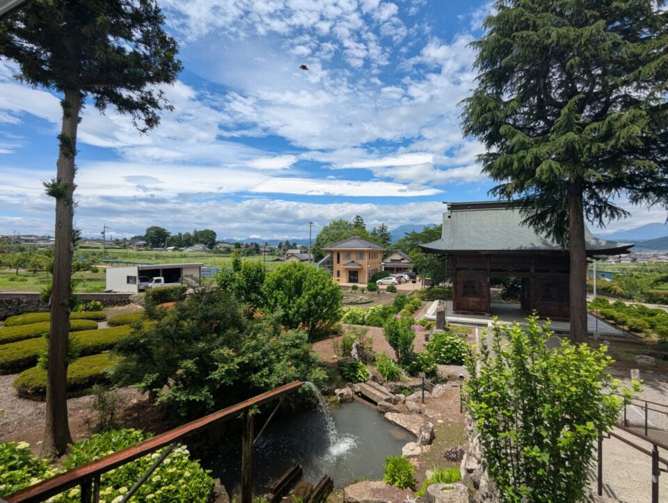 この村をさらに興味深いものにしているのは、近くの岩松院です。村の中心部から徒歩約30分の場所にあるこの寺院には、3人の日本史上の有名人にまつわるお話が残されています。まずひとつは再び葛飾北斎。岩松院のご本堂の天井に壮大な鳳凰の絵が描かれています。180年以上にわたり、塗り替えなどがされていないこの名画は、北斎の晩年の大作と考えられています。ふたつめは豊臣秀吉の下で名をはせた名将福島正則。広島からこの地に移封されてきた彼は、この岩松院を菩提寺としており、多くの遺品が遺されています。最後は小林一茶。松尾芭蕉などと並んで日本最高の俳諧師として有名な一茶の「やせ蛙 負けるな一茶 これにあり」という句は、この岩松院の裏庭の池に集まってくる蛙たちを見て詠まれたとも言われています。